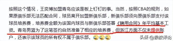值得一提的是王奕博的转会闹剧当中,浙江没有开出顶薪合同,青岛开出600万顶薪,但在支付培养费方面(培养费金额为该国内球员与新俱乐部签署《聘用合同》年平均基本工资),浙江男篮俱乐部一度拒绝给到相关账号引发过不少争议。